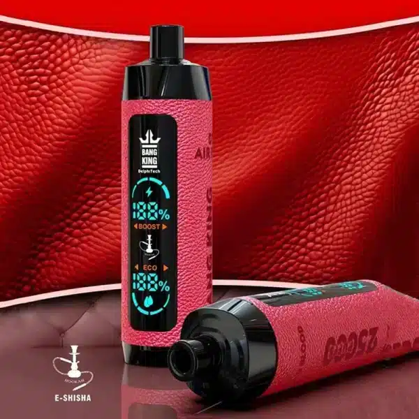 Bang King Shisha 25000 offers up to 25,000 puffs with 30mL e-liquid, shisha-inspired flavors, and a 650mAh rechargeable battery. Smooth, long-lasting, and flavorful.